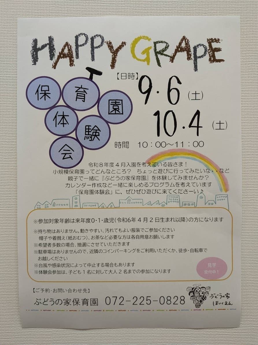 =HAPPY GRAPE(保育体験会)のお知らせ=